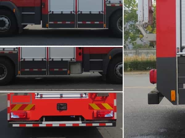 其它 | 罐體總?cè)莘e為4.100立方米,水罐容積:3.550立方米,水罐為異型罐,前端尺寸:1530×1300×1530mm,后端尺寸:520×1300×1000mm,A類(lèi)泡沫液罐容積:0.210立方米,A類(lèi)泡沫液罐尺寸:810×510×530mm,B類(lèi)泡沫液罐容積:0.340立方米,B類(lèi)泡沫液罐尺寸:810×830×530mm。整體式側(cè)防護(hù)結(jié)構(gòu),后防護(hù)裝置材料:Q235,截面尺寸:120×120mm,與車(chē)輛連接方式:螺栓連接,后防護(hù)離地高度:435mm。前伸:485mm。EBS生產(chǎn)企業(yè)為WABCO,型號(hào)為480 020 XXX0。主要專(zhuān)用裝置有壓縮空氣泡沫系統(tǒng)。 |